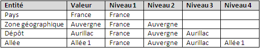 Ainsi dans un niveau inférieur on pourra avoir par exemple l'adresse d'un dépôt.