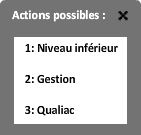 Dans ce cas lors du clic sur la zone un menu récapitulatif des actions proposées ce superposera sur la carte.