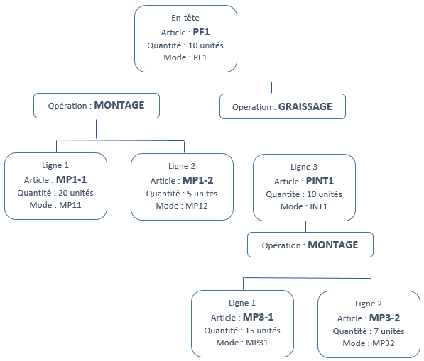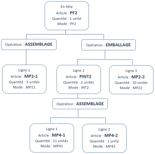La duplication mono-niveau consiste à créer une formule à partir d'une autre. La duplication multi-niveaux permet, quant à elle, de dupliquer tous les niveaux d'une formule, nomenclature et gamme, à partir de la sélection d'une formule correspondant au niveau 0 de la hiérarchie.