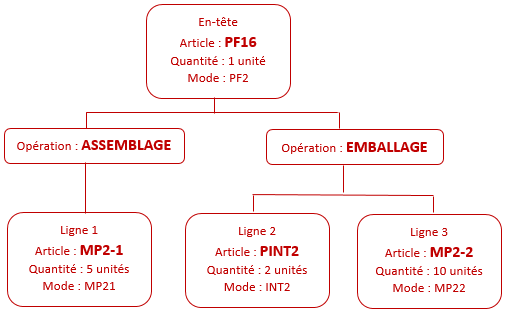 Si l'opération destination de l'action sur les formules (GAFG) traitée est renseignée, seule cette opération est créée dans la formule de niveau 0 (toutes les lignes y sont alors rattachées), sinon, les opérations de formule (QAIFNO) sont automatiquement créées à partir des opérations de la formule d'origine.