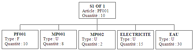 Lors de l'exécution du traitement, à partir de l'ordre S1 OF 1 on obtient le résultat suivant :
