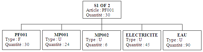 Si le traitement est de nouveau exécuté à partir de l'ordre S1 OF 2 et avec la caractéristique "mise à jour des ordres globaux" cochée dans les critères du traitement, on obtient le résultat suivant :