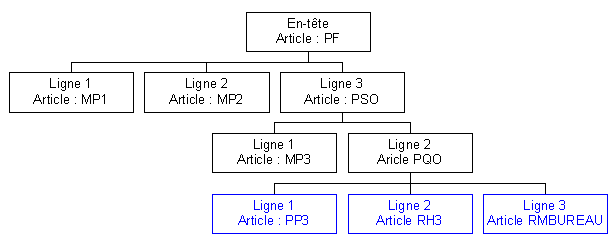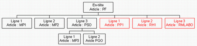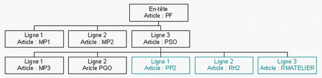 En reprenant l'exemple précédent, si une génération d'ordres est demandée à partir de la formule du PF sur le chemin P, voici la formule complète pouvant être prise en compte :