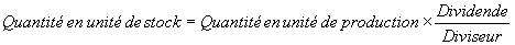 Coefficients permettant la conversion entre l'unité de production et l'unité de stockage.