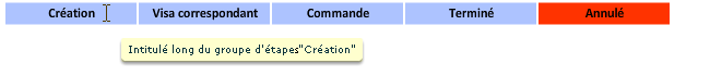 Suivant le paramétrage des groupes d'étapes, des infobulles peuvent être affichées. Par défaut, c'est l'intitulé long du groupe d'étapes qui apparaît.