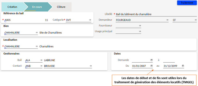 Le traitement de génération des éléments locatifs (TMGEL) permet de générer des ordres de maintenance représentant les éléments financiers et de passer les étapes jusqu'à transférer les montants en comptabilité.