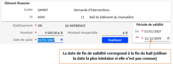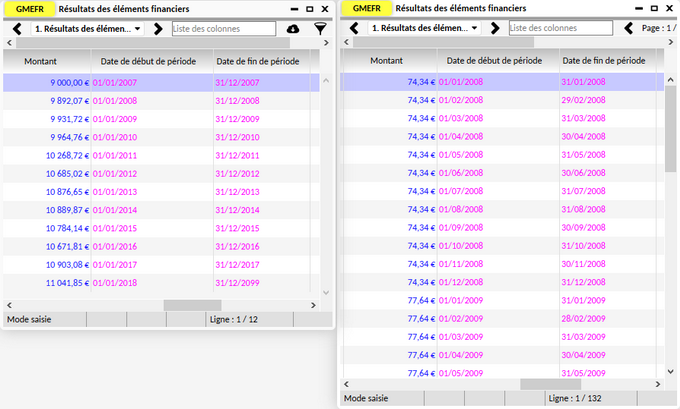 Définition du montant du bail dans les résultats d'élément financier (GMEFR).