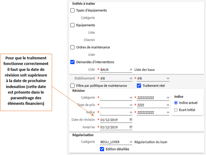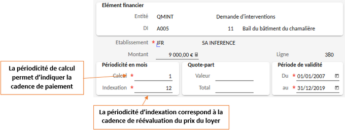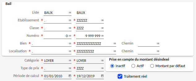- Exemple de paramétrage d'indexation selon un indice pour un bail