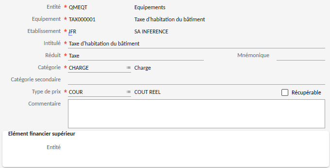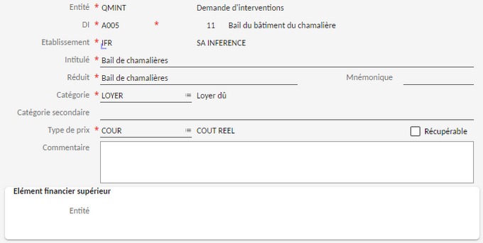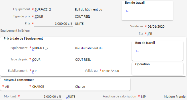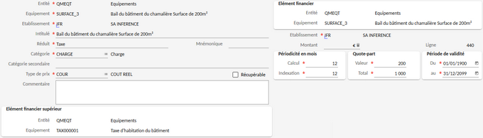 Le fait de renseigner le prix de l'élément financier supérieur va affecter les résultats des éléments financiers fils.