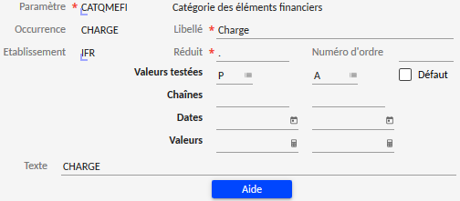 Le champ "Texte" de la catégorie de l'élément financier (paramètre CATQMEFI) permet de définir l'article à utiliser lors de la génération des prix à date.