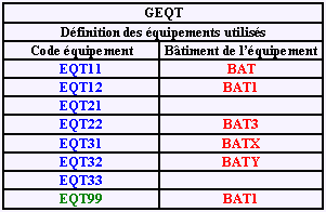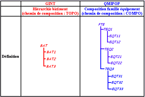 Ces deux hiérarchies permettent ensuite de retrouver tous les équipements d'une composition équipements, figurant dans une hiérarchie de bâtiments (grâce à la localisation de l'équipement dans un bâtiment (GEQT)).