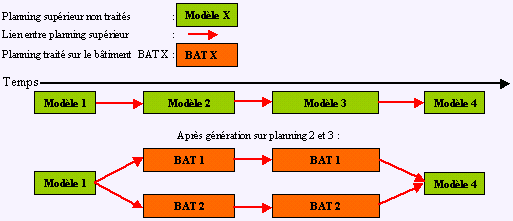 De ce fait, un premier planning d'ordre de maintenance situé sur un bâtiment donné sera indépendant d'un second planning d'ordre de maintenance situé sur un autre bâtiment, même si initialement ils étaient regroupés sur un même planning supérieur.