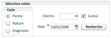 - tous les codes panne, nature ou diagnostic s'appliquant à un équipement ou à une famille en particulier ou à un ensemble d'équipements et de familles (cumul) ;