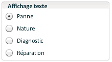 - le texte d'un des codes (panne, nature, diagnostic ou réparation) de l'association (GDPR) sélectionnée.