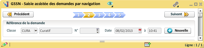 Les boutons "SUIVANT", "PRECEDENT" et "BPNOUVELLE" sont affichés par défaut dans toutes les étapes. Il est possible de les afficher à une position différente à chaque étape (par exemple en bas de chacune d'elle).