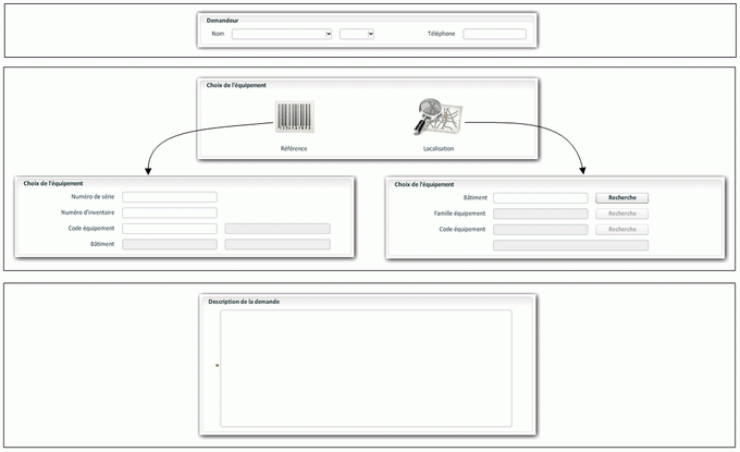 Cette étape permet de sélectionner l'équipement sur lequel porte la demande d'interventions, soit par sa référence, soit par sa localisation.