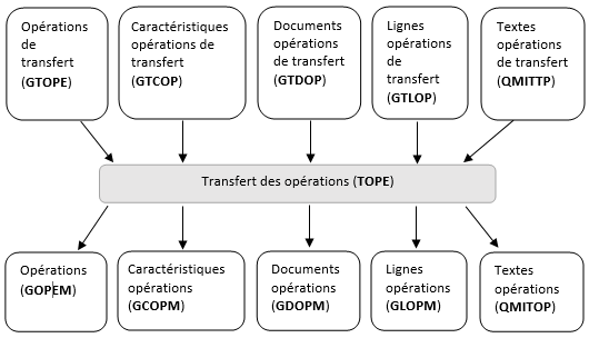 Permet de lancer directement l'intégration à partir de l'écran sans avoir recours au traitement d'intégration des opérations (TOPE). Il s'agit non seulement de l'intégration de l'opération, mais aussi de l'intégration des éléments des tables de transfert périphériques qui lui sont associées, c'est-à-dire les documents (GTDOP), les caractéristiques (GTCOP), les lignes (GTLOP) et les textes (QMITTP).