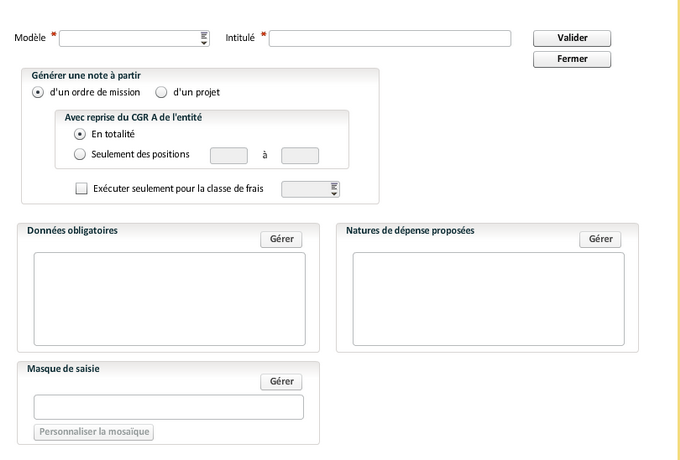Il est nécessaire de définir un cadre pour la génération d'une note de frais à partir :