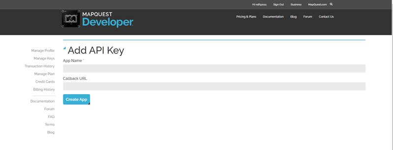 Cette clé se génère, une fois authentifié, depuis le site accessible à l'URL suivante https://developer.mapquest.com.