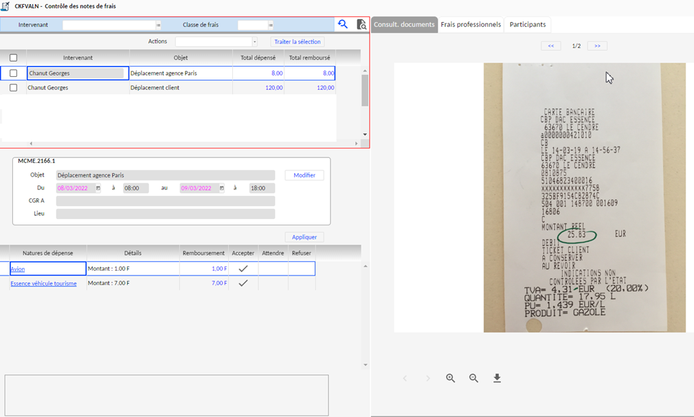 L'approbation des éléments (note de frais ou déplacement) peut être réalisée de manière globale ou partielle.