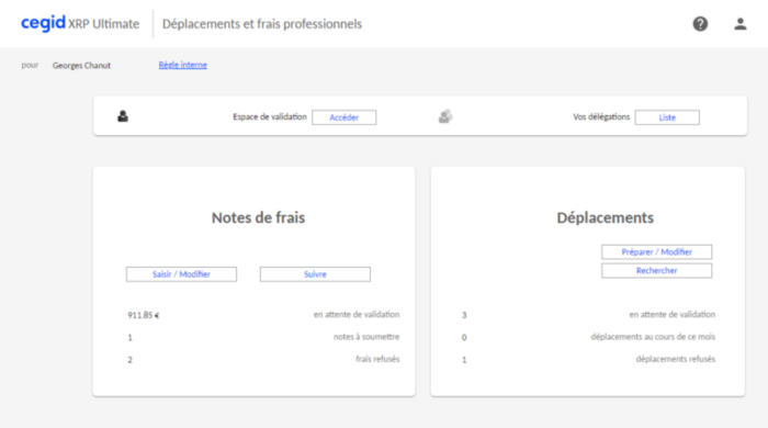 L'espace dit "validation" permettant le contrôle des demandes et des notes de frais.
