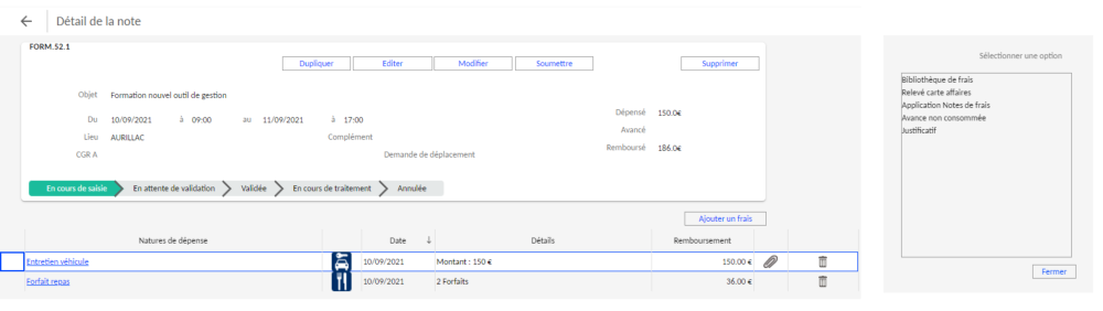 - Soumettre la note de frais.