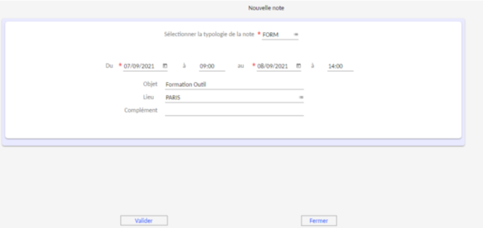 C'est un récapitulatif de la note. L'utilisateur peut encore effectuer des modifications. Le bouton "Soumettre" lui permet d'intégrer cette note au flux de validation.