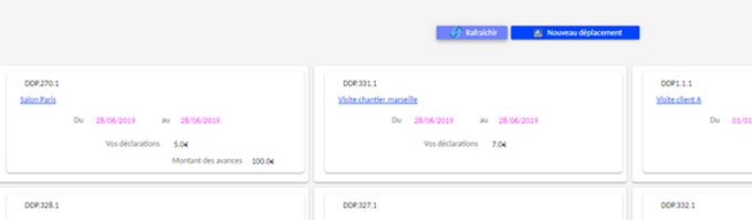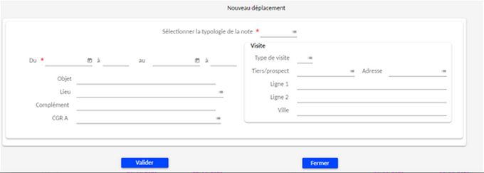 Accès depuis "Nouveau déplacement"