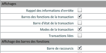 - l'affichage des barres et des modes de la transaction doivent être actifs ;