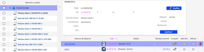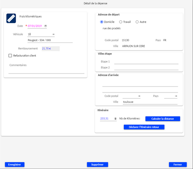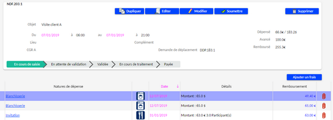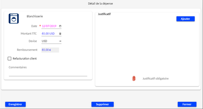 L'outil permet d'adapter l'écran de saisie en fonction de la nature de dépense.
