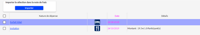 Accès depuis "Nouvelle note de frais"