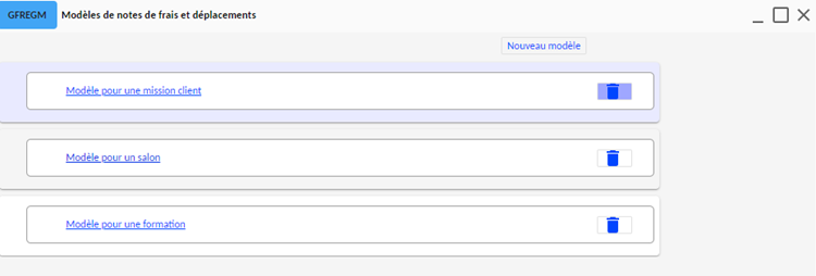 Les modèles définissent un cadre pour guider les collaborateurs dans la saisie de leurs déclarations ou la création d'un déplacement.