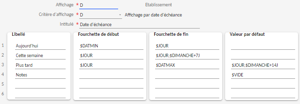 Le critère d'affichage correspond à un champ des tâches prévus, afin de définir les différentes colonnes affichées.