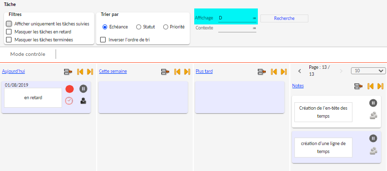 Le mode d'affichage est ensuite choisi dans l'écran du conteneur des tâches.