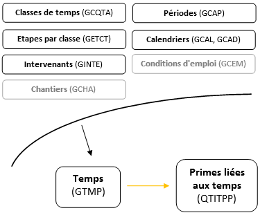 Certaines données de l'intervenant (GINTE) ou de sa qualification (GQUA) sont enregistrées sur les temps afin de conserver les valeurs actives pour la date des temps.