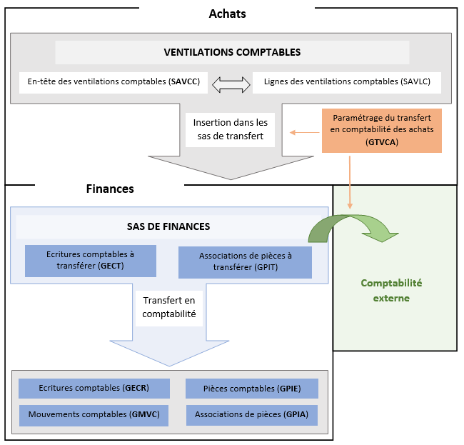 Le traitement crée l'en-tête de la ventilation comptable, puis ses lignes associées. Les données de la ventilation comptable alimentent le sas des écritures (GECT).