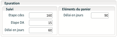Toutes ces commandes (demandes) présentes dans le suivi depuis une durée supérieure ou égale à ce délai seront épurées du suivi.