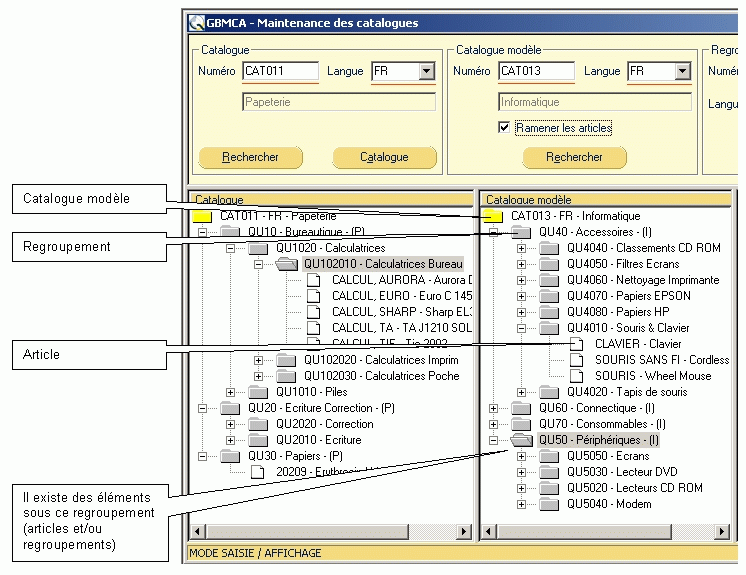 Le catalogue modèle est seulement utilisable en consultation. Il ne peut subir aucune modification.