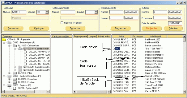 Cette gestion graphique permet d'effectuer la maintenance des catalogues, de la simple mise à jour à la constitution complète du catalogue.