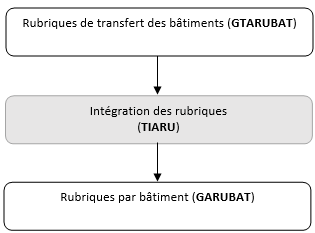 Les rubriques des bâtiments sont intégrées uniquement à partir du bouton "Transfert". Celui-ci permet d'intégrer une à une les rubriques des bâtiments dans GARUBAT.