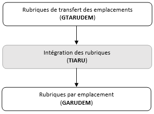 Les rubriques des emplacements sont intégrées uniquement à partir du bouton "Transfert". Celui-ci permet d'intégrer une à une les rubriques des emplacements dans GARUDEM.