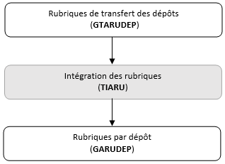 Les rubriques des dépôts sont intégrées uniquement à partir du bouton "Transfert". Celui-ci permet d'intégrer une à une les rubriques des dépôts dans GARUDEP.