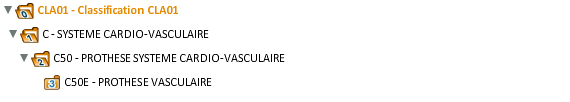 Cette consultation permet de visualiser, de façon hiérarchique, une classification (GCLA) en fonction de sa composition (GCCL).