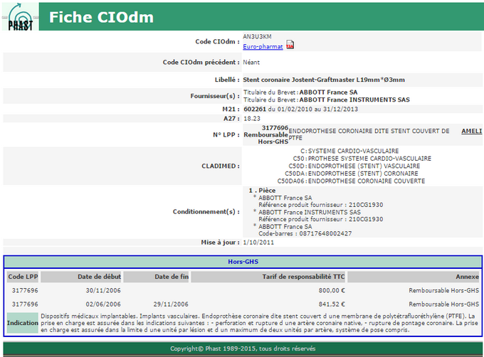 Code issu du référentiel externe. Dans le cas des dispositifs médicaux, il s'agit de l'article CIOdm. Pour les médicaments, c'est le code UCD.