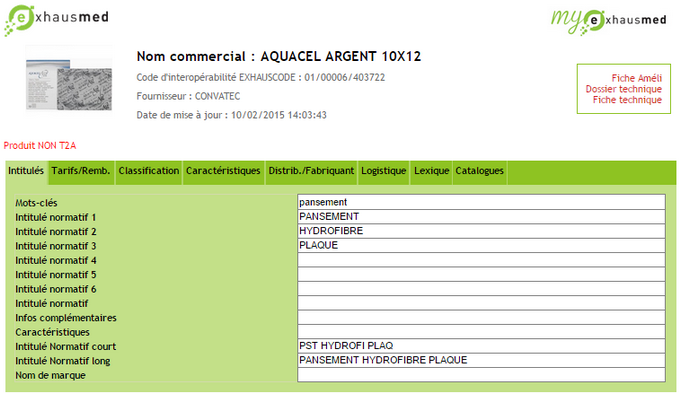 Exemple d'une fiche "Exhausmed"