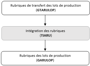 Les rubriques des lots de production sont intégrées uniquement à partir du bouton "Transfert". Celui-ci permet d'intégrer une à une les rubriques des dépôts dans GARULOP.