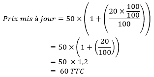Calcul du prix mis à jour