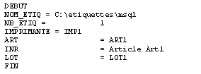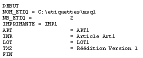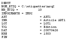| ETQ_EX2 | Etiquette 2 | msq2 | 01/01/1900 | 31/12/2099 | IMP2 | Détail lot | Edition | Réédition | |