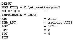 | ETQ_EX3 | Etiquette 3 | msq3 | 01/01/1900 | 30/04/2007 | IMP3 | Rubrique RUB1 |