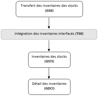 L'inventaire doit être inséré avec le flag de transfert à "B" et une fois l'inventaire transféré, le flag passe à "T" si la suppression de l'enregistrement est une suppression logique (paramètre TRFSII, occurrence SUPSTI).